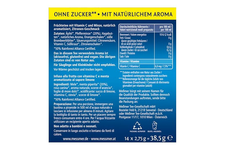 Früchtetee mit Vitamin C und Minze aromatisiert Zitronen-Geschmack |