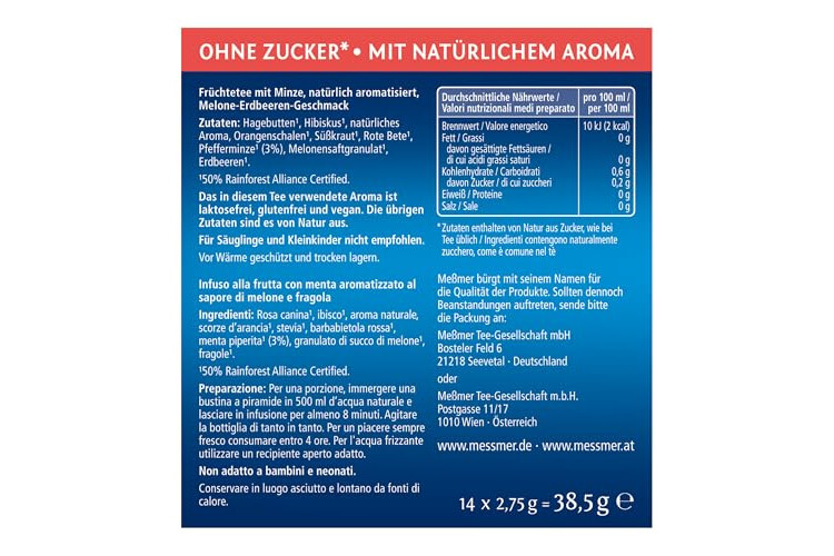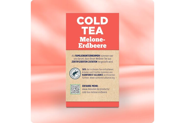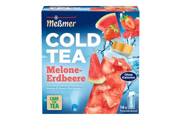 Meßmer Cold Tea Melone-Erdbeere | Früchtetee | Kaltaufguss | ohne Zuckerzusatz | 14 Pyramidenbeutel