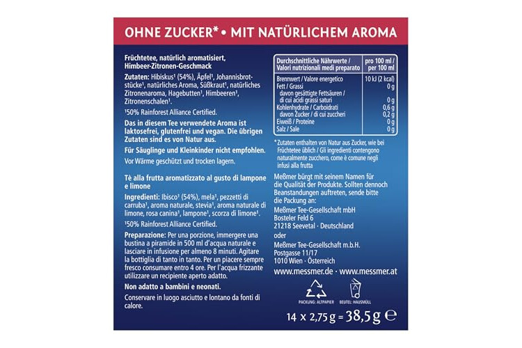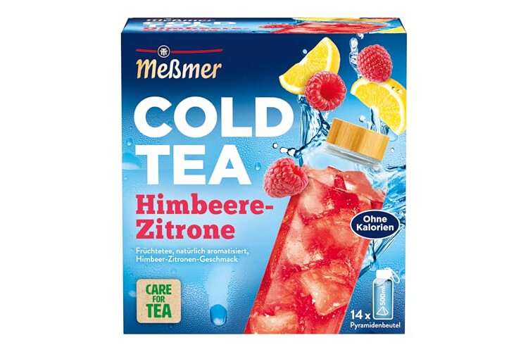 Meßmer Cold Tea Himbeere-Zitrone | Früchtetee | Kaltaufguss | ohne Zuckerzusatz | 14 Pyramidenbeutel