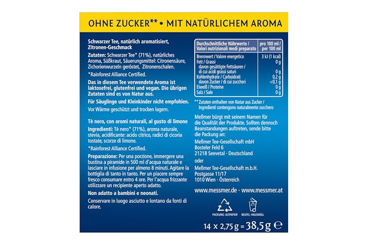 • Erfrischender Schwarztee mit Zitronen-Aroma ganz ohne Zuckerzusatz und Kalorien: Ideal für bewusste Genießer!