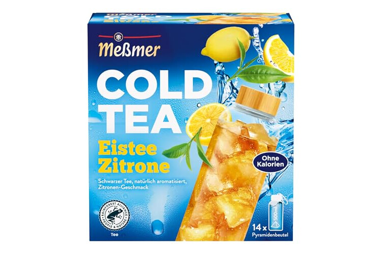 Meßmer Cold Tea Eistee Zitrone | Schwarzer Tee mit Zitronen-Aroma | Kaltaufguss | ohne Zuckerzusatz | 14 Pyramidenbeutel