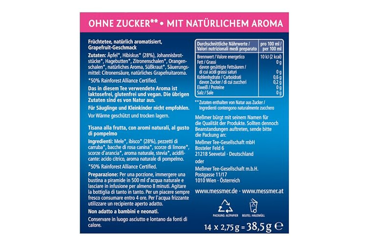 | Kontakt zum Hersteller | Meßmer Tee-Gesellschaft mbH, Bosteler Feld 6 21218 Seevetal, Germany |