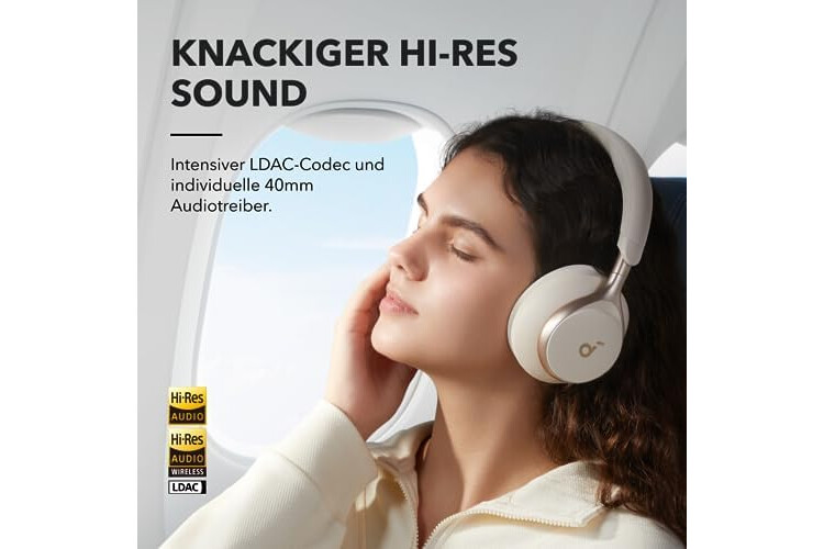 HI-RES AUDIO: Die maßgeschneiderten dynamischen 40mm-Audiotreiber von Space One unterstützen LDAC für hochauflösendes kabelloses Audio und liefern dreimal mehr Präzision im Vergleich zu Standard-Bluetooth-Codecs für detailreiches Hören - ganz ohne Kabelsalat.