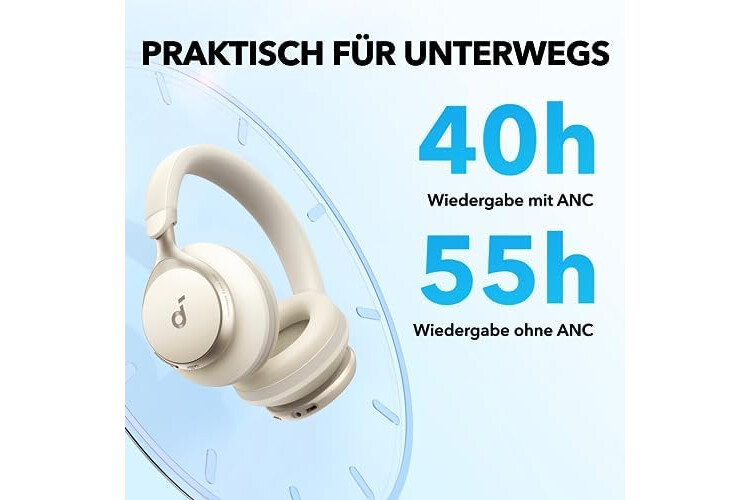 40 STUNDEN ANC-WIEDERGABE: Genieße 40 Stunden Spielzeit mit ANC und 55 Stunden ununterbrochene Musikwiedergabe ohne ANC - perfekt für la...