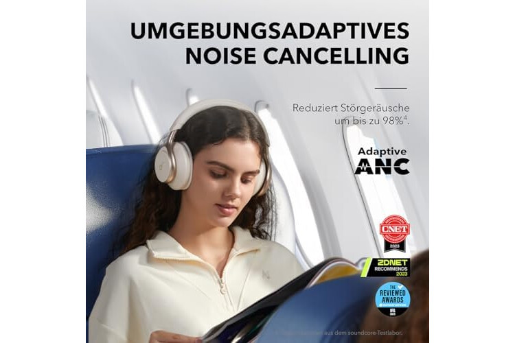 NOISE CANCELLING MIT BIS ZU 98%*: Die adaptive Geräuschunterdrückung deiner kabellosen Kopfhörer erkennt externe Geräusche und führt eine automatische Kalibrierung durch, um optimales Noise Cancelling zu gewährleisten. Entfliehe unerwünschten Ablenkungen, egal ob im Zug, im Coffeeshop oder im Büro. *Von soundcore unter Laborbedingungen getestet.
