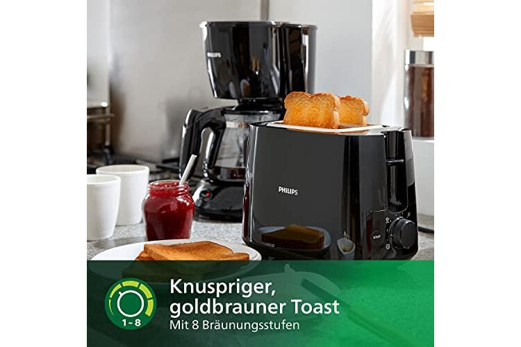 | Weitere Spezifikationen | 8 Röstgrade, Auftau- und Aufwärmfunktion, automatische Zentrierfunktion, integrierter Brötchenaufsatz |