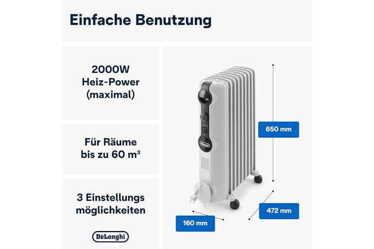 De'Longhi Radiator Radia-S TRRS0920 – 1500 W Heizleistung, stufenloser Temperaturregelung und Frostschutzfunktion