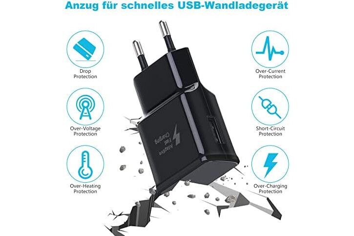 15W QC3.0 Schnellladegerät Netzteil mit USB C kompatibel,für:Samsung Galaxy S21/S20/S10/S9/S8/Note 8/9/10/20/A54/A53/A34/A33/A32 USB Typ A Ladegerät Adapter Fast Charger ladekabel