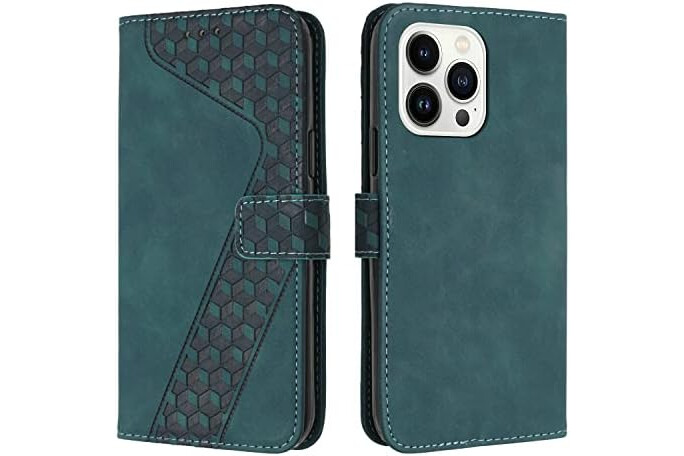 Handyhülle für iPhone 14 Pro Max Hülle, PU Leder Klapphülle Kartenfach Ständer Magnetisch, Flip Case Cover Handytasche Stoßfeste Schutzhülle für iPhone 14 Pro Max (Grün)