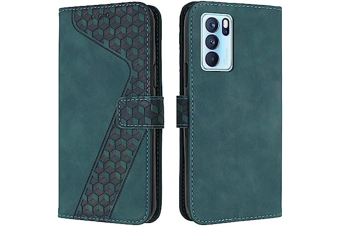 Handyhülle für Oppo Reno 6 Pro 5G Hülle, PU Leder Klapphülle Kartenfach Ständer Magnetisch, Flip Case Cover Handytasche Stoßfeste Schutzhülle für Oppo Reno 6 Pro 5G (Grün)