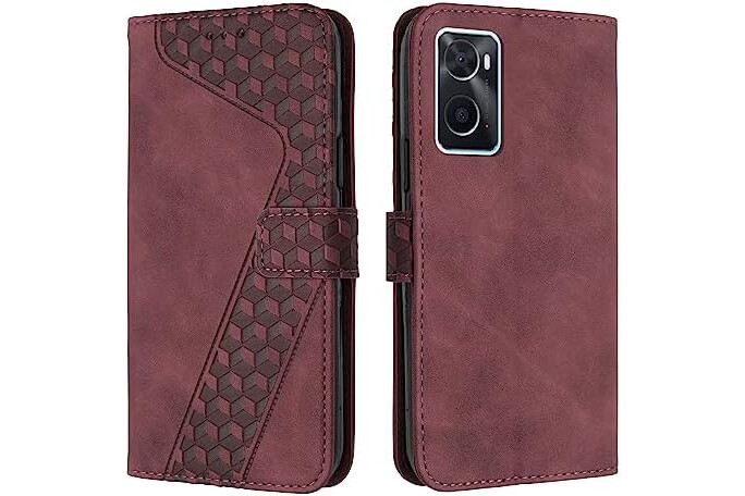 Handyhülle für Oppo A96 4G / Oppo A76 4G Hülle, PU Leder Klapphülle Kartenfach Ständer Magnetisch, Flip Case Cover Handytasche Stoßfeste Schutzhülle für Oppo A96 / Oppo A76 (Rot)