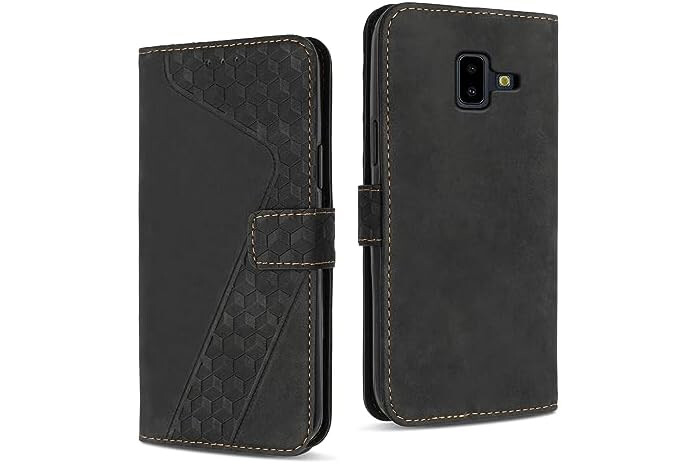 Handyhülle für Samsung Galaxy J6 Plus 2018 Hülle, PU Leder Klapphülle Kartenfach Ständer Magnetisch, Flip Case Cover Handytasche Stoßfeste Schutzhülle für Samsung J6 Plus 2018 (Schwarz)