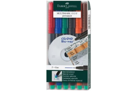 FABER-CASTELL 151404 - Marker Multimark, non-permanent, Stärke F, 4 Stück im Etui, je 1x rot, blau, grün, schwarz