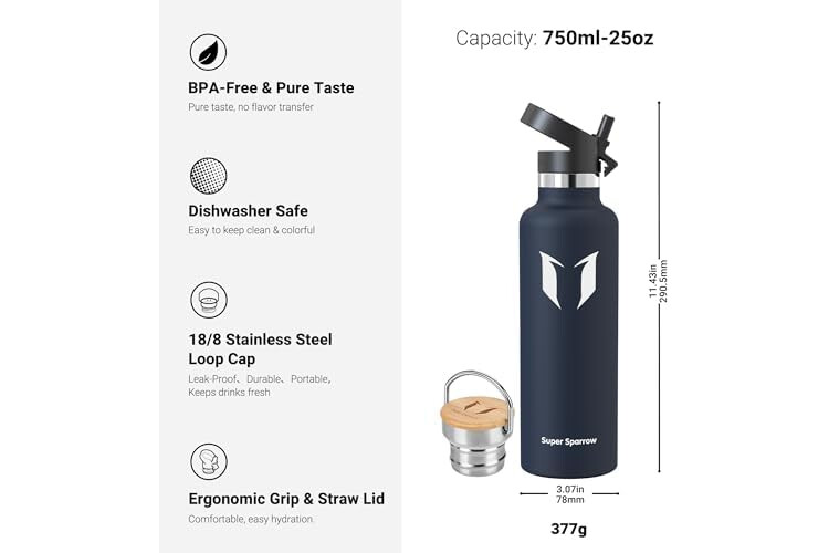 ✔ BPA freier Edelstahl - Herstellung von Lebensmittelqualität , extrem langlebig, BPA-freien Edelstahl wird nicht Blutegel Chemikalien oder Giftstoffe , mit großer Kapazität 750ml für eine dauerhafte Feuchtigkeits!