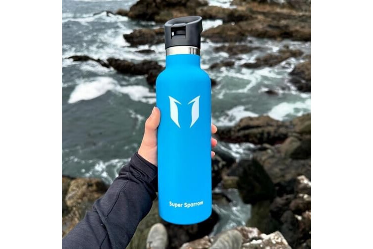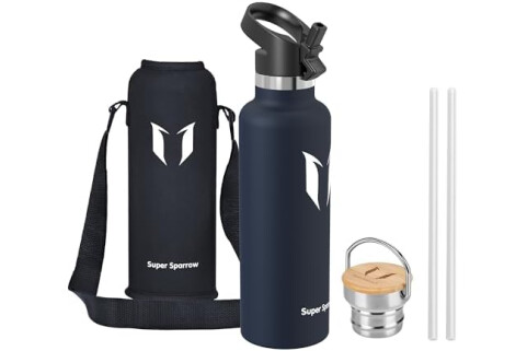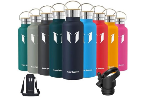 Super Sparrow Trinkflasche Edelstahl - 350ml/500ml/620ml/750ml/1L - Auslaufsicher Thermoskanne, BPA-Frei Wasserflasche - Thermosflasche Kinder für Sprudel, Sport, Schule, Fitness - Mit 2 Deckeln