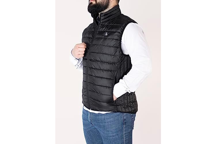 S&C - Chaleco Hombre Vestir - Chaleco Caballero Acolchado - Tejido Exterior Polyester - Cremallera Invertida - Ribete Elástico - Bolsillos Laterales con Cremallera - Fabricado en España