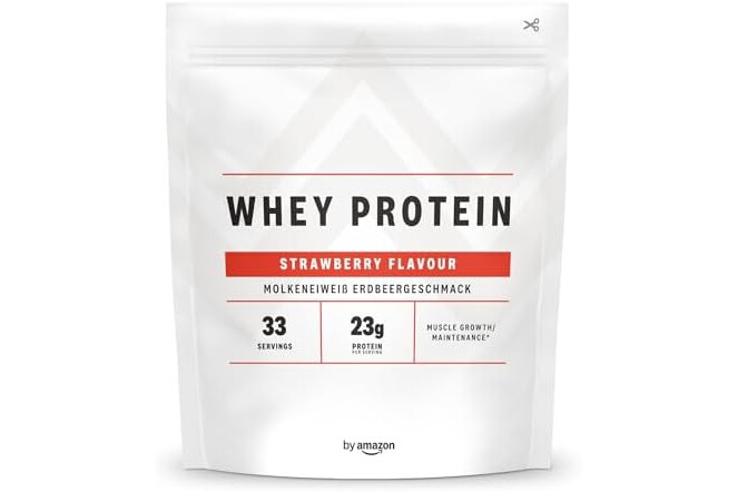 by Amazon - Nutrition Whey Protein Powder 1kg Strawberry, (Anteriormente Marca AMFIT, Mismo Producto)