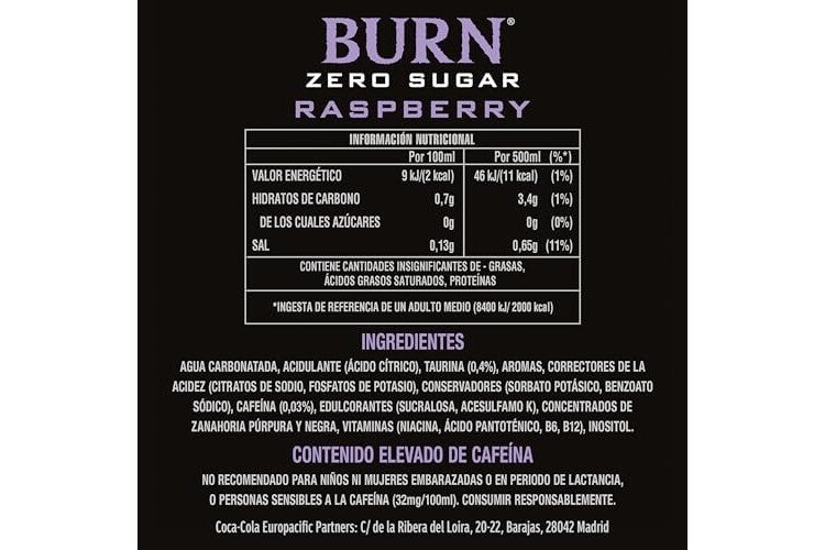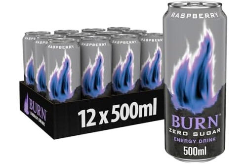 Burn Energy Zero Raspberry, Bebida Energética - Pack de 12 Latas de 500ml