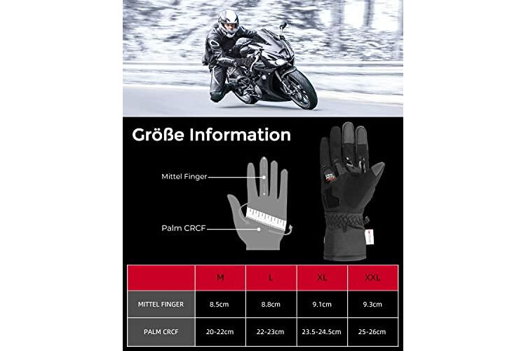 Uso versátil: los guantes cálidos se pueden utilizar de muchas maneras para motocicletas, por ejemplo, carreras, ciclismo, senderismo, patinaje, esquí y otras actividades al aire libre. También son impermeables, forrados y muy cómodos. Gracias a las fibras de carbono, también está protegido contra quemaduras.