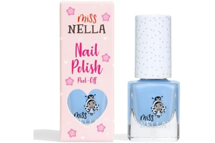 Miss Nella- Blue Bell- Esmalte de uñas especial azul con brillantina para niños, con fórmula despegable, a base de agua y sin olor