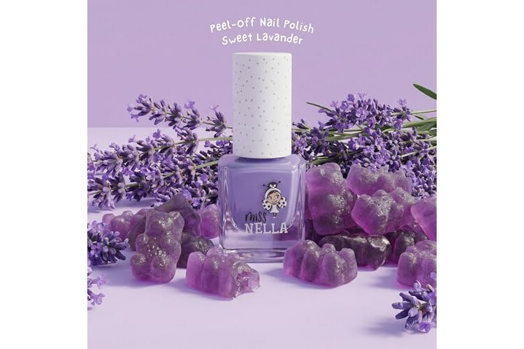 Miss Nella SWEET LAVENDER-Esmalte especial para uñas con brillos para niños, fórmula despegable, a base de agua y sin olor