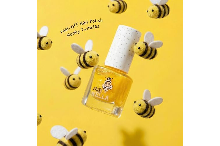 Miss Nella HONEY TWINKLES- Esmalte especial para uñas con brillos para niños, fórmula despegable, a base de agua y sin olor