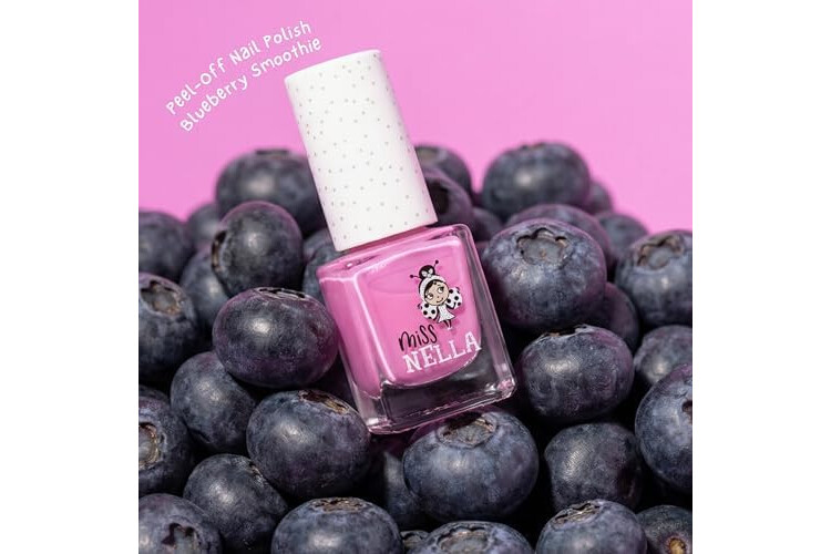 Miss Nella BLUEBERRY SMOOTHIE- Esmalte de uñas especial morada con brillantina para niños, con fórmula despegable, a base de agua y sin olor