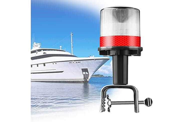 FÁCIL INSTALACIÓN: la luz de navegación viene con un soporte extraíble que puede sujetar objetos de menos de 6 cm de diámetro en un tubo con un diámetro interior de 3 cm, muy fácil de instalar, y el soporte de pie de acero inoxidable es más seguro que los imanes.