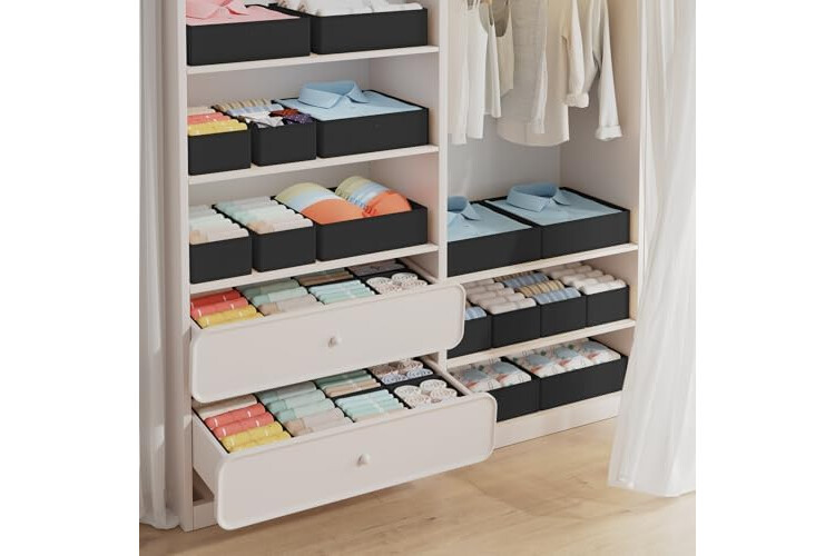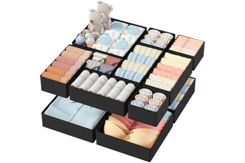 DIMJ Organizador Cajones Juego de 12 Cajas Almacenaje Plegables de Tela Para Guardar Ropa, Organizadores de Cajones No Tejidos, Calcetines, Ropa Interior, Negro