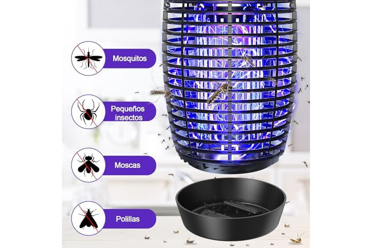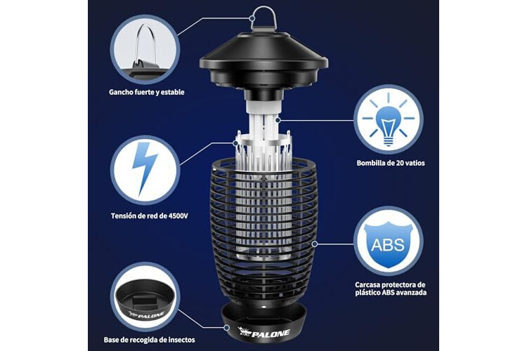 🦟【Lámpara Antimosquitos Profesional】PALONE lámpara antimosquitos muy eficaz, con un alcance efectivo de 100 metros cuadrados y una potente rejilla de seguridad de alta tensión de 4500V. Los insectos voladores, como los mosquitos, las moscas y las polillas, son atraídos por la luz ultravioleta y mueren.