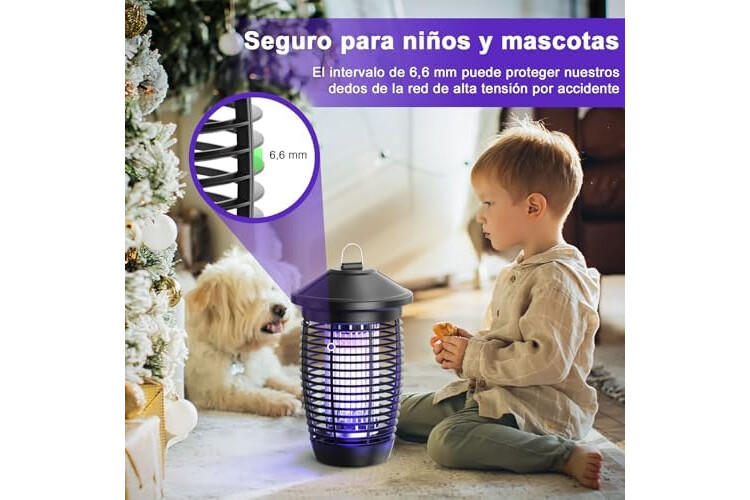 🦟【Seguro y No Tóxico】En comparación con los peligrosos insecticidas tradicionales o los aerosoles potencialmente dañinos, las lámpara antimosquitos no contienen productos químicos y son inodoras. Es seguro para las mujeres embarazadas, los niños y las mascotas. Hemos envuelto la rejilla en una duradera carcasa de ABS para evitar cualquier riesgo de descarga eléctrica a mascotas y niños.