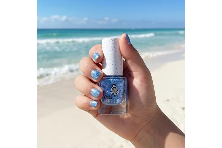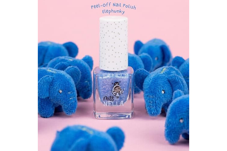 Miss Nella Its Elephunky- Esmalte de uñas especial azul con brillantina para niños, con fórmula despegable, a base de agua y sin olor