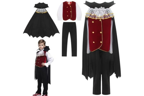 GEMVIE Disfraz de vampiro de lujo para niños,Halloween Drácula
