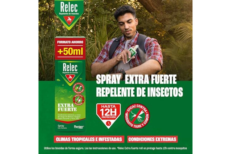 Relec Extra Fuerte Spray Antimosquitos 125ml: Protección hasta 9 horas, altamente eficaz, especialmente contra el mosquito tigre