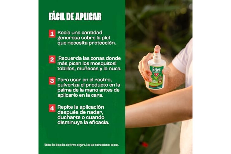 Fácil de aplicar: Pulveriza sobre la piel expuesta, evitando ojos, boca y heridas abiertas, para garantizar la máxima eficacia en su formato de 125 ml.