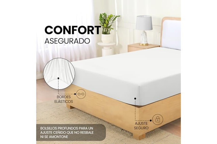 Elástico En Los Bordes: El elástico utilizado en la sábana bajera en los bordes hace que se adapte fácilmente al colchón a la vez que da un bonito acabado a la cama.