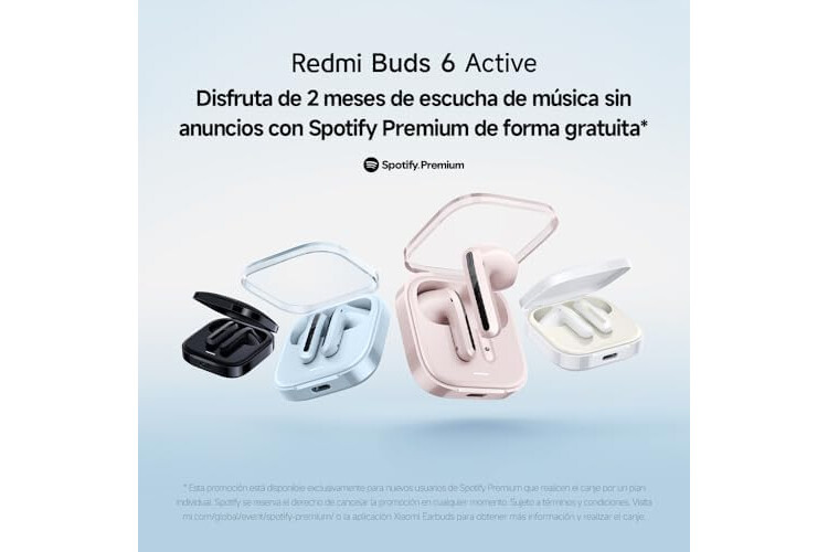 XIAOMI Redmi Buds 6 Active - Auriculares inalámbricos, cancelación de Ruido, Ligeros, hasta 36 Horas de autonomía, Bluetooth 5.3, Blanco (Versión ES)