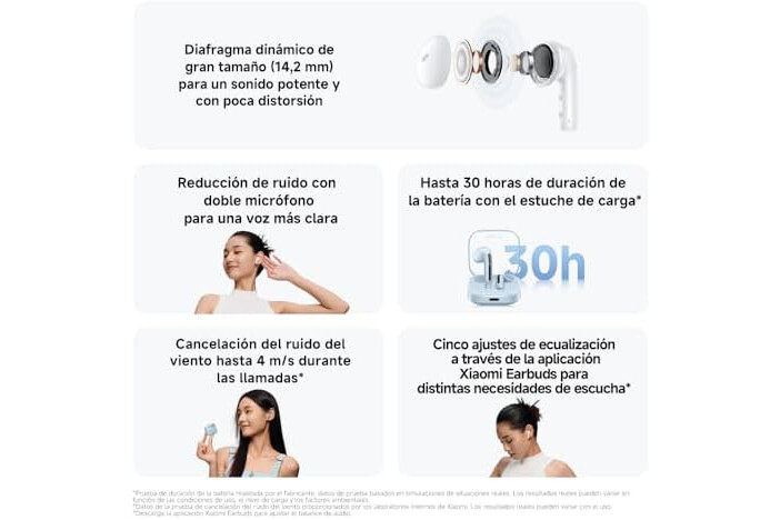 Compacto y portátil, fácil de llevar, un accesorio de moda que siempre querrás contigo y Compatible con la aplicación Xiaomi Earbuds, es el compañero ideal para tu teléfono.