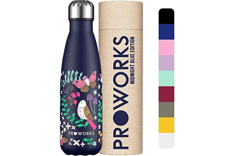 Proworks Botellas de Agua Deportiva de Acero Inoxidable | Cantimplora Termo con Doble Aislamiento para 12 Horas de Bebida Caliente y 24 Horas de Bebida Fría - Libre de BPA - 350ml - Magia del Bosque