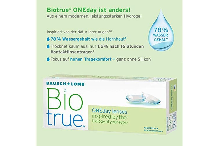 Biotrue ONEday BAUSCH + LOMB lentillas diarias esféricas, 30 unidades / 8.6 BC / 14.20 DIA / +00,50