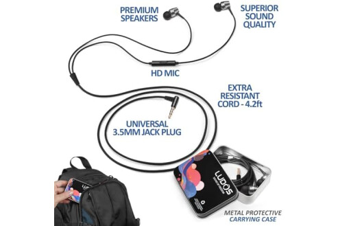 Ludos OMNITONE Auriculares In Ear con Cable y Microfono, 5 Años de Garantía, Auricular con Jack, Cascos Musica con Graves Potentes, para iPhone, iPad, Samsung, Xiaomi, Huawei, Gaming