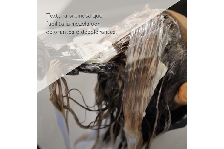 TEXTURA CREMOSA. Que facilita la aplicación y la mezcla con la crema colorante capilar y el polvo decolarante.