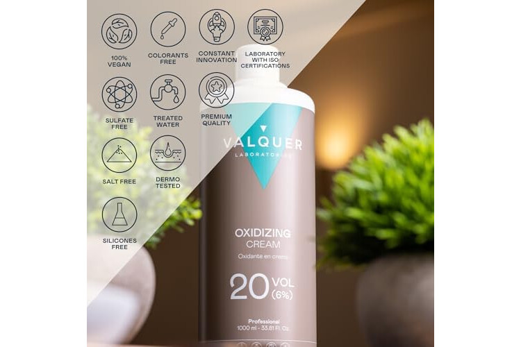 VALQUER OXIGENADA. Emulsión oxigenada, con una concentración de 20 volúmenes (6%). Potencia el desarrollo del color en el cabello al mezclarse con la crema colorante capilar.
