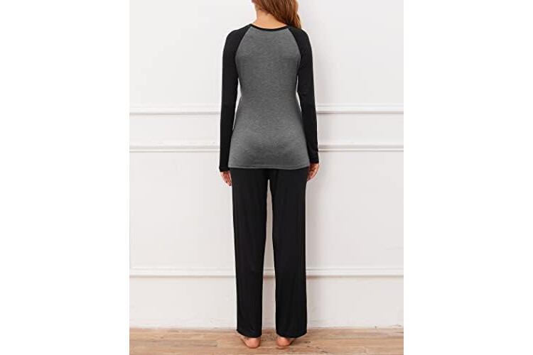 Ekouaer Pijamas de Lactancia para Mujer Invierno Pijamas de Maternidad Conjunto de Embarazadas de Mangas Largas S-XXL