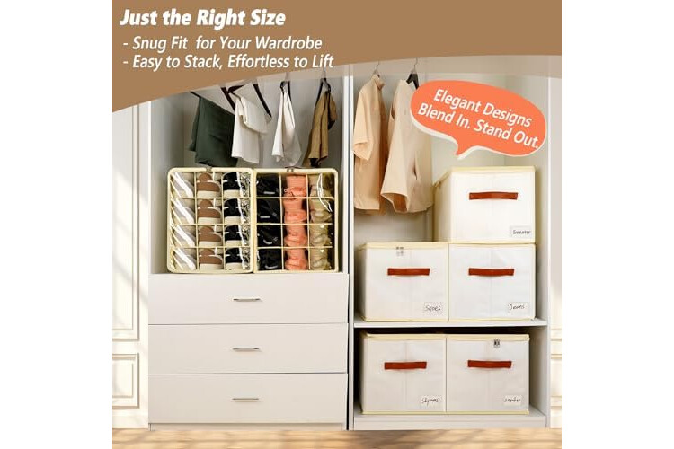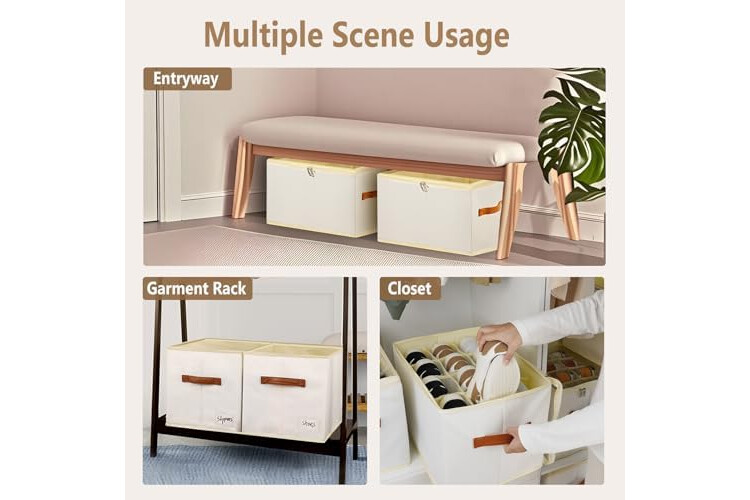 Ajuste perfecto para banco: dimensiones cuidadosamente diseñadas según la investigación (43 x 32 x 31 cm), perfecto para colocar en el banco, la combinación de esta caja de almacenamiento de zapatos y banco es una solución perfecta. Además, este tamaño también es perfecto para el armario