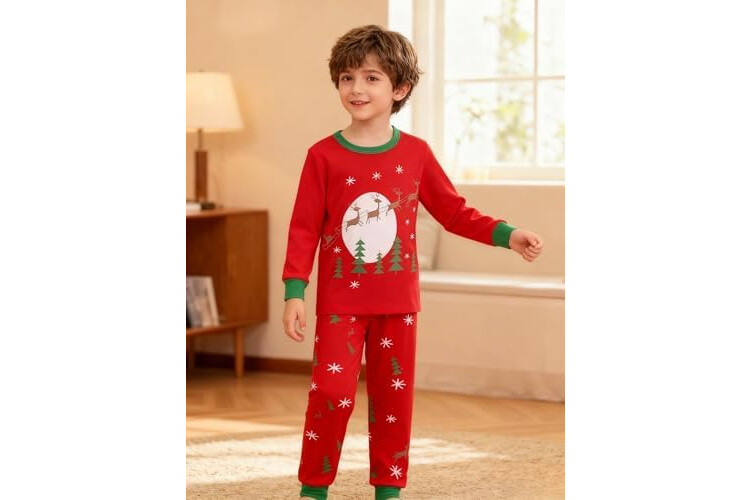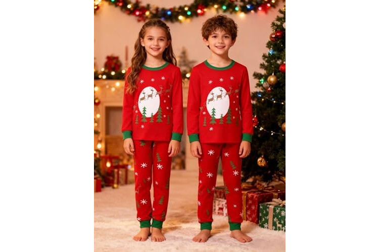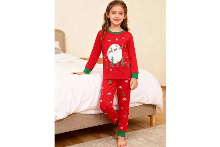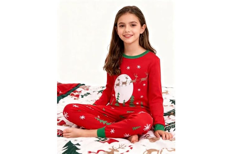 Pijamas Niño Navidad Pijamas Niña Navidad Pijamas para Ropa niño Manga Larga Algodón Dos Piezas 2-12 años