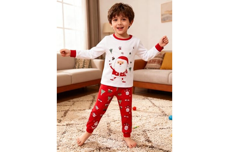 Pijamas Niño Navidad Pijamas Niña Navidad Pijamas para Ropa niño Manga Larga Algodón Dos Piezas 2-12 años