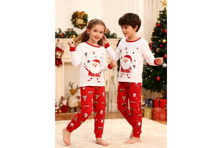 Pijamas Niño Navidad Pijamas Niña Navidad Pijamas para Ropa niño Manga Larga Algodón Dos Piezas 2-12 años