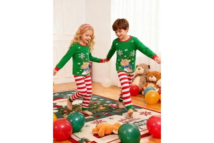 Pijamas Niño Navidad Pijamas Niña Navidad Pijamas para Ropa niño Manga Larga Algodón Dos Piezas 2-12 años