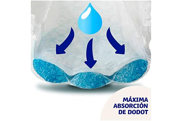 Gracias al sistema de 3 capas de Dodot, la humedad se absorbe óptimo, ayudando a que la piel de tu bebé respire